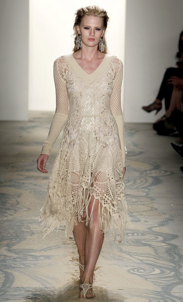 Knitted flared skirt will also help hide figure flaws, make the silhouette slimmer. Dresses with perforation or guipure with the effect of a knitted thing look original. This model successfully combines comfort and beauty.