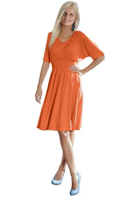 - Owners of A-type body should dwell on a flared dress below the knee length. In this embodiment, the fullness of the hips will be adjusted, and the legs are shown in the best light.