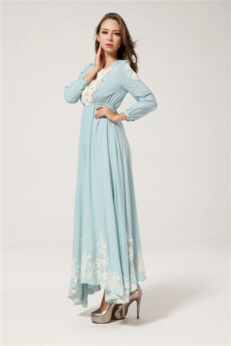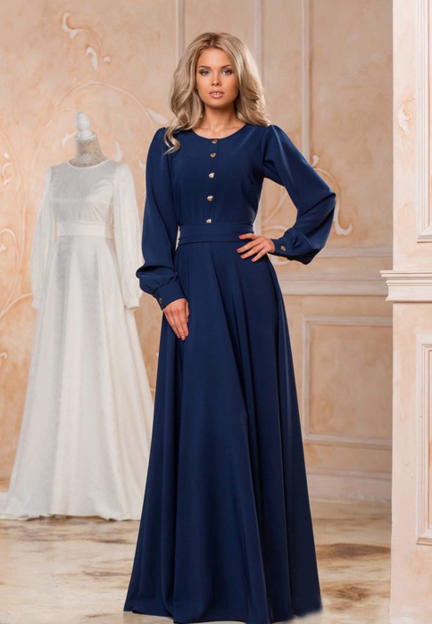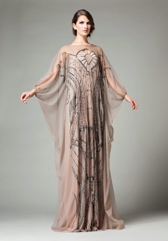 Long sleeves are usually found in dresses made of light chiffon, they can be made of lace, guipure or other translucent fabric.