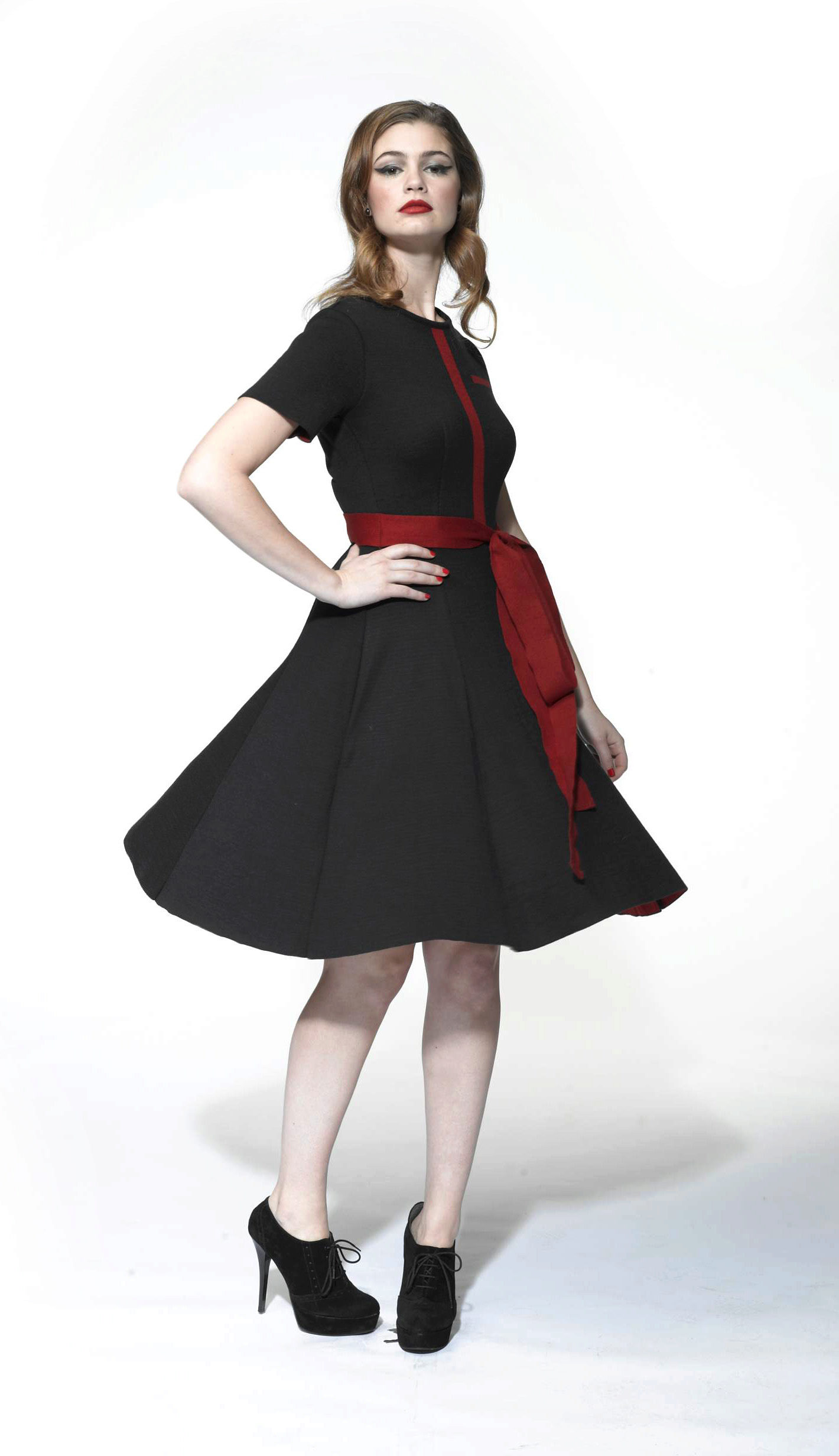 Often, comfortable sandals or elegant shoes with heels are selected for flared dresses, but ballet flats can also be worn in everyday life.