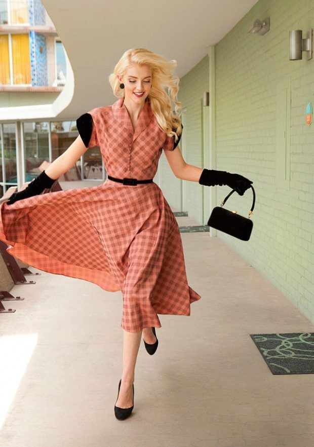 If you want to create an image in retro style, then the A-silhouette dress can be complemented with an original hairstyle with a bow, shoes with a steady heel and a bag of style of those times.
