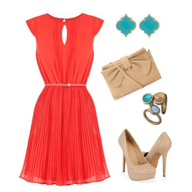 - Dress, flared from the chest, which is often chosen to create an image in the Empire style, can be worn with both short and long necklaces or necklaces. Massive earrings draw attention to the neck. When choosing shoes it is worth buying only light and elegant.For example, to create a Greek style, you can wear sandals of gold or silver color. Do not forget that short dresses always need elegant shoes, because your legs in a wide outfit will be the center of attention.
