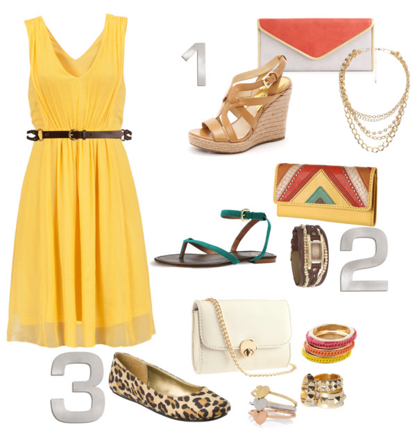 The choice of shoe model depends not only on the style of the dress, but also on its length. So, for a short dress you can choose stylish sandals or shoes with a low heel, although a high heel will make your image slimmer.