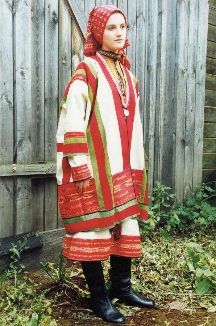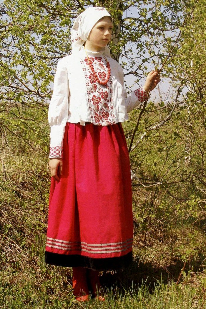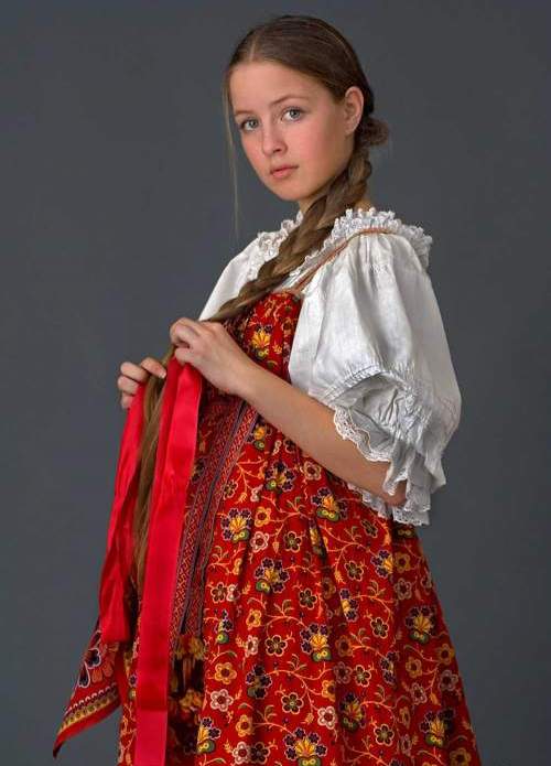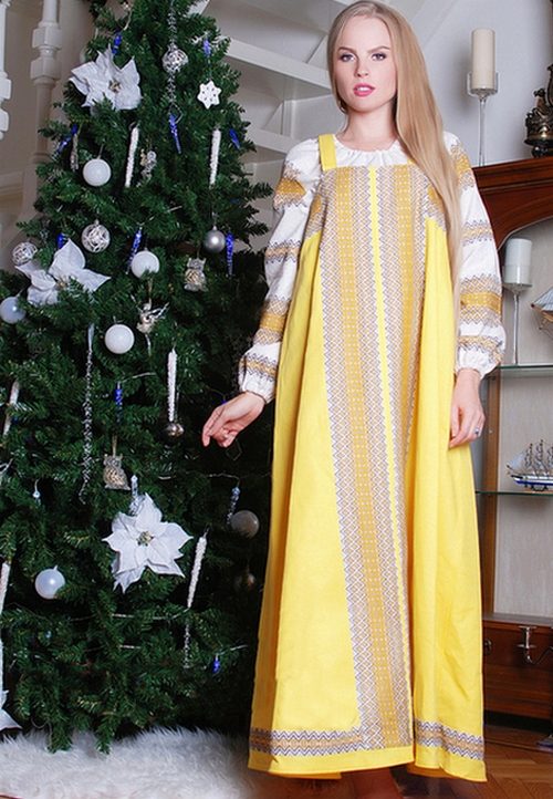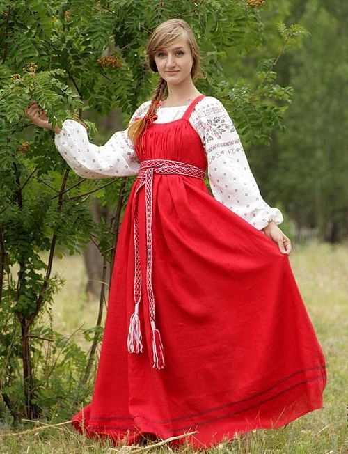In the past, the dress was worn with a long shirt, which was most often white. Now, under the sundress, they also wear mainly a shirt with long sleeves, decorated with embroidery, but sometimes it is replaced with a white blouse. In winter, a Russian dress is worn with a fur coat or a warmer jacket.