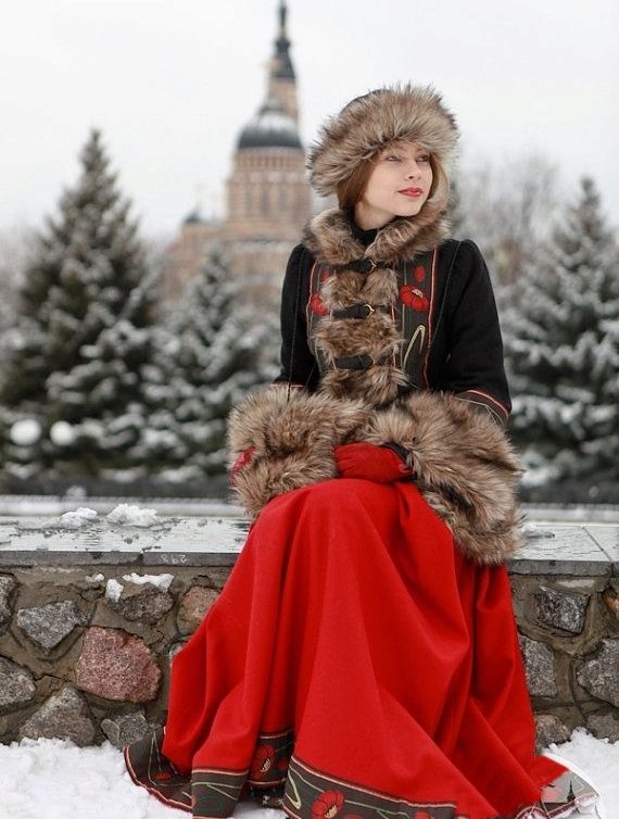 I want a red Russian dress for a photo shoot. There are such beautiful models!