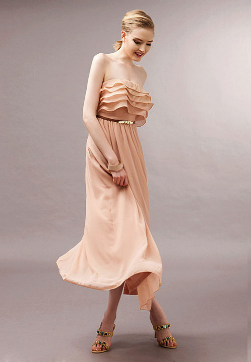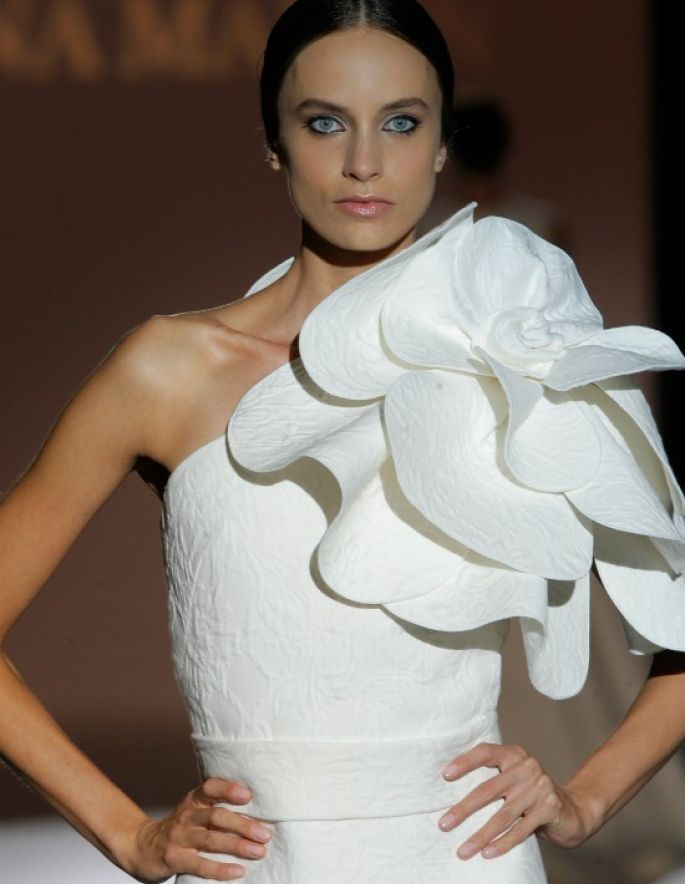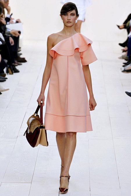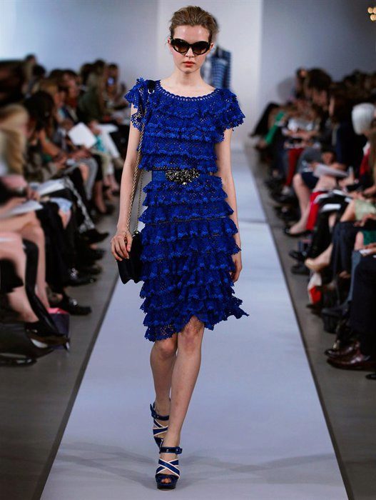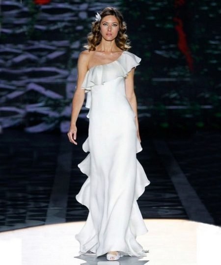 Dresses trimmed with flounces of various sizes and shapes are very popular now and are often found on the catwalks. Designers' collections include various elegant dresses for weddings and other celebrations, and cute models for everyday use.