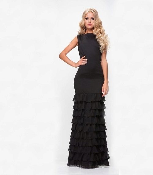 Black products with plenty of horizontal flounces along the entire length also look attractive.