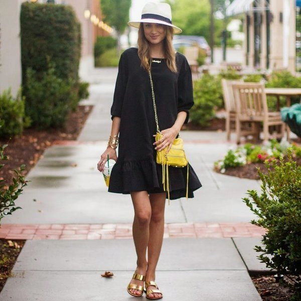 The best addition to the side of this style will be classic shoes and sandals without heels. Also with a similar dress you can wear lace-up ankle boots and platform boots.