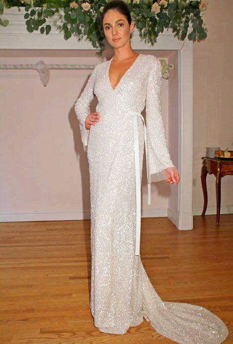 This length of the dress with the smell is chosen mainly for special occasions. Particularly luxurious look dresses in the floor of this style in scarlet, silver, ivory, white, burgundy and emerald color.
