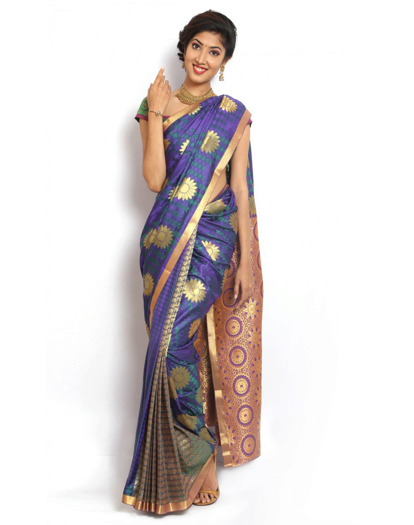 - Wrap the product from the right side to the left side, making one circle. In this case, the lower part of the sari should be touching the floor.