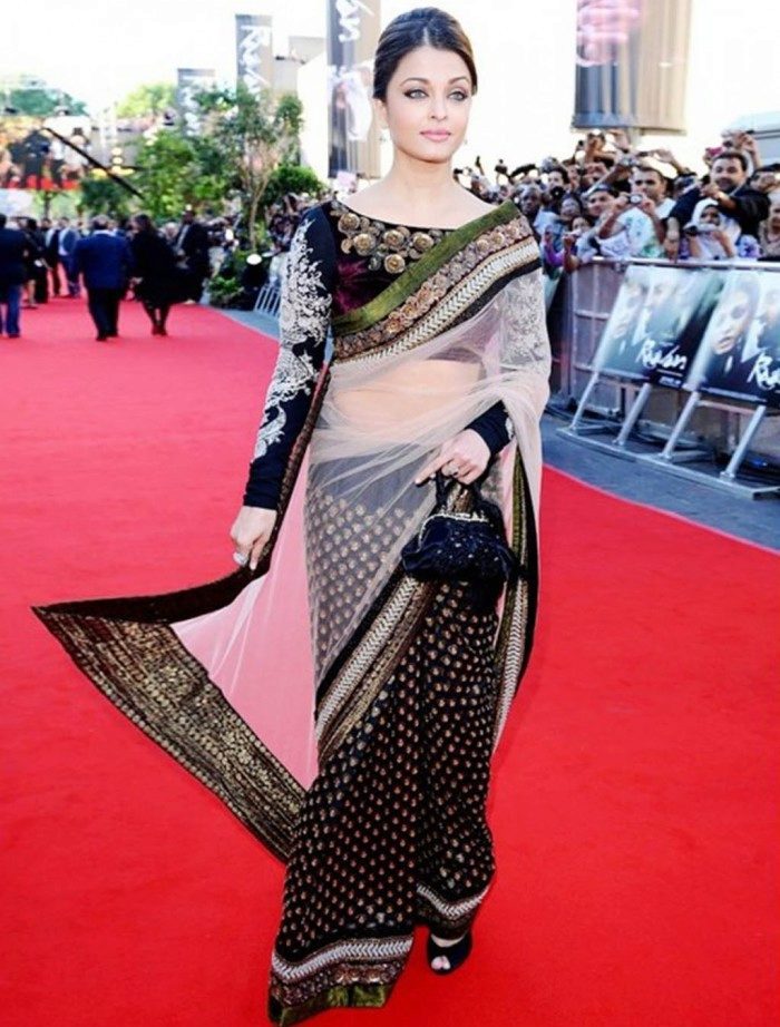 The famous actress from India has repeatedly appeared on the red carpet and other important events in luxurious saris.