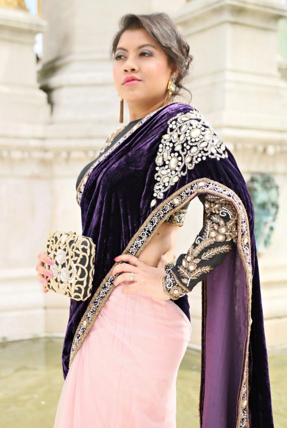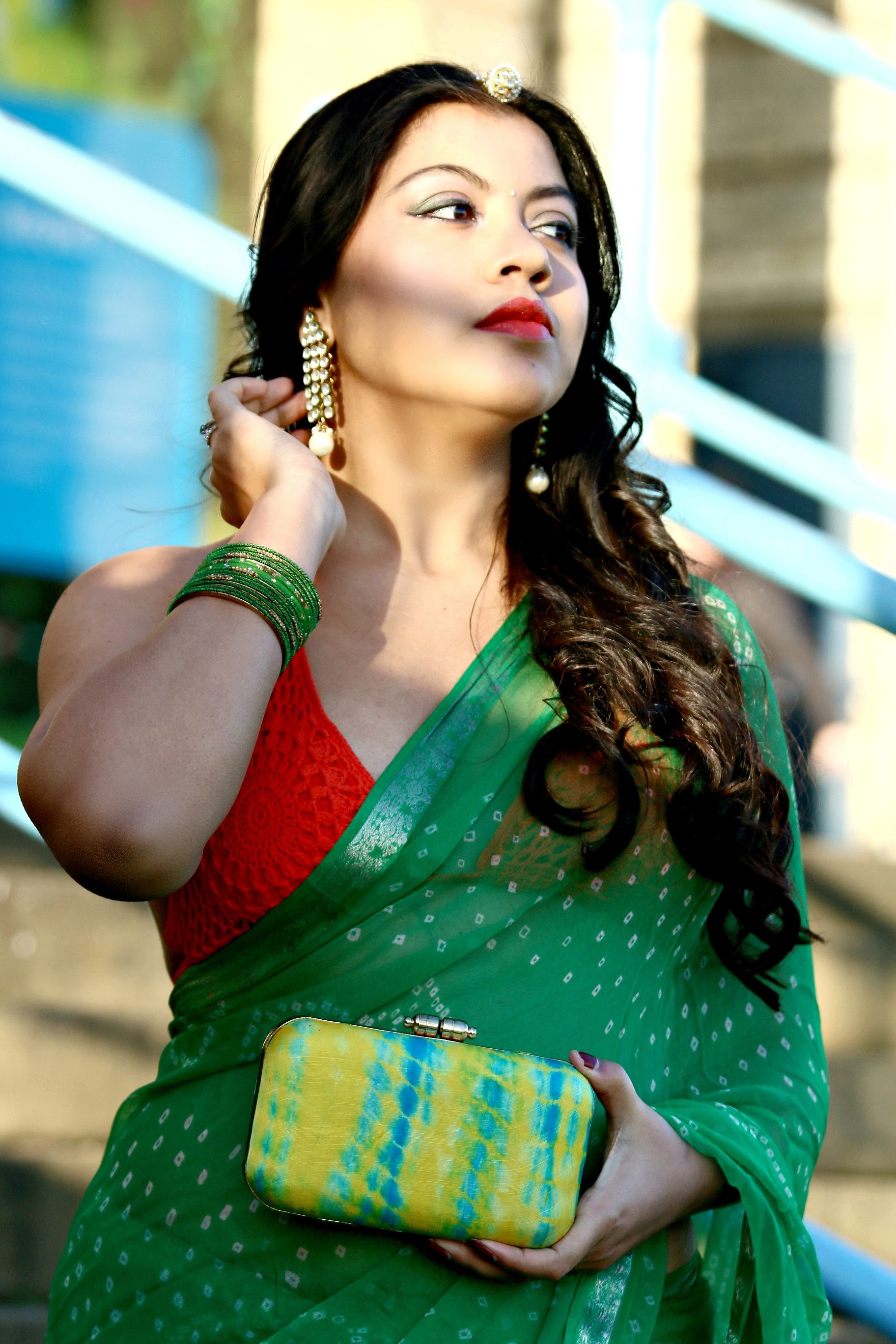 - By the elegant version of the sari, you can pick up a small clutch bag.