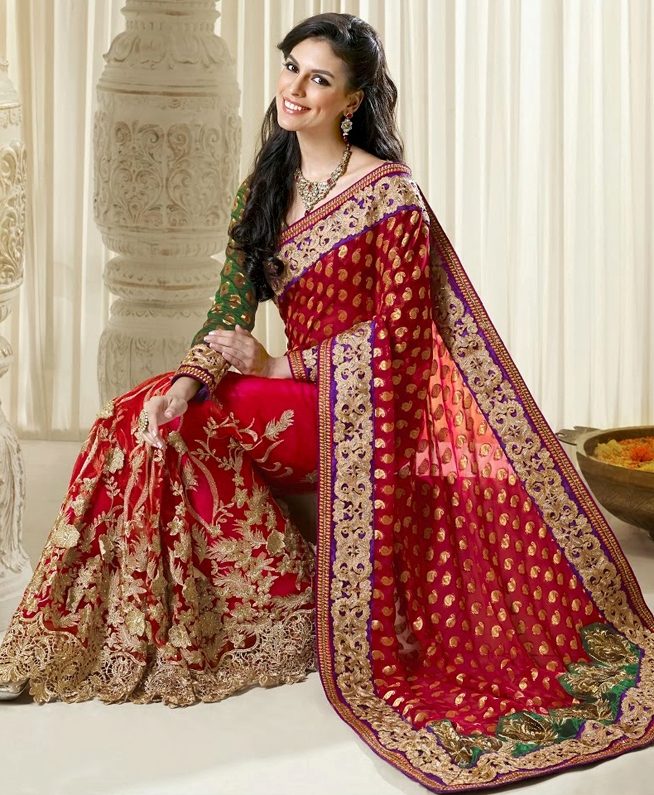 The sari in which the girl is getting married is very beautiful and refined. Products are decorated with beads, silver or gold embroidery, rhinestones and other attractive decor.