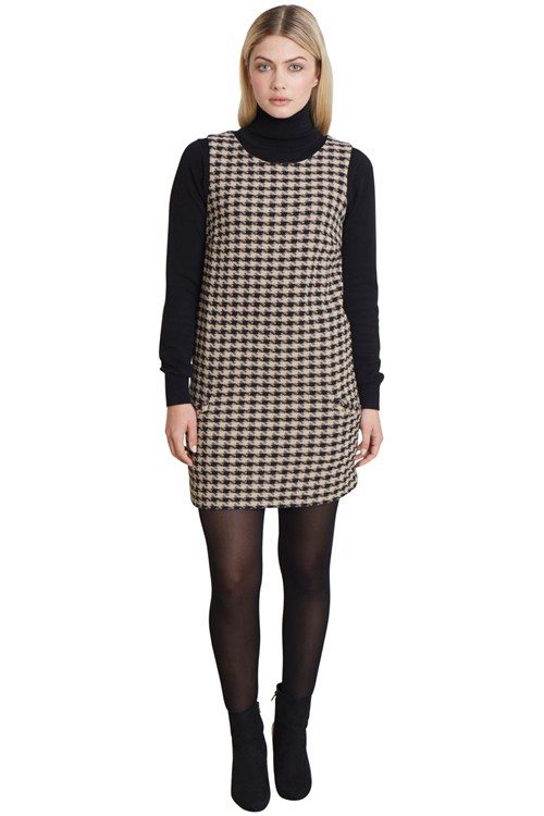 Dress-shift is a valuable representative of the basic wardrobe. The classic version of the sleeveless, stylish looks in combination with a turtleneck, knitted jumper.