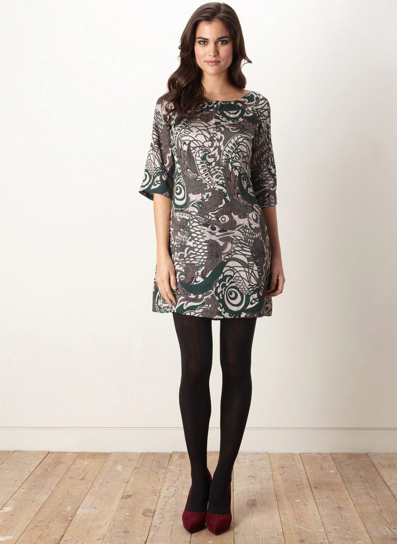 "Classics of the genre", in a dress Shift is a short length. Of course, it is worth considering the age, shape of the legs and purpose of the dress. After all, a square cut, without a flare, makes the dress even shorter. If you, nevertheless, are determined, and are not going to go to the office in it, then you can put on a dress with tight tights, dark monophonic leggings.