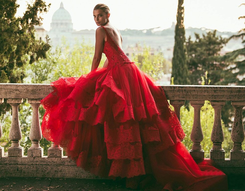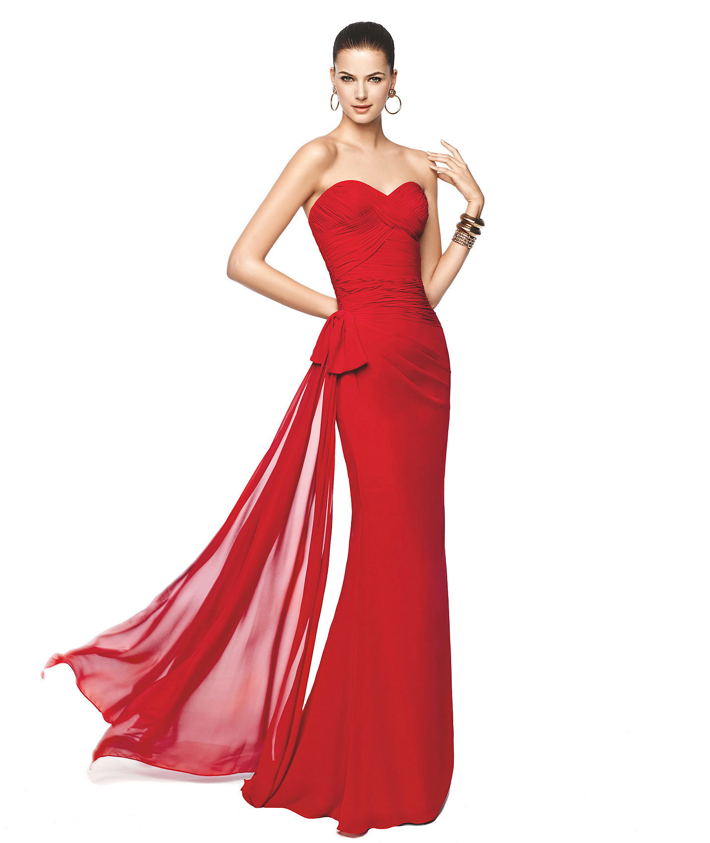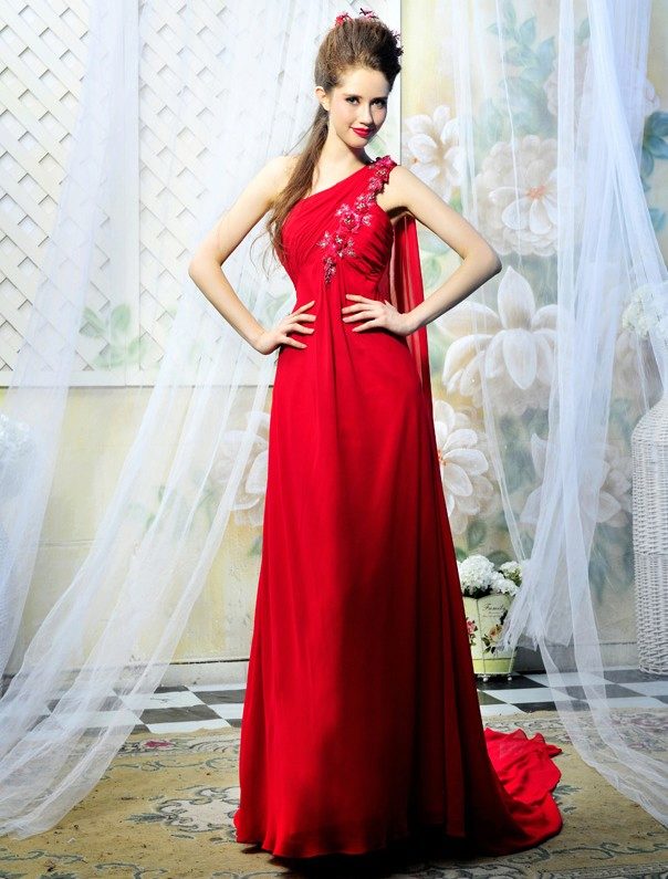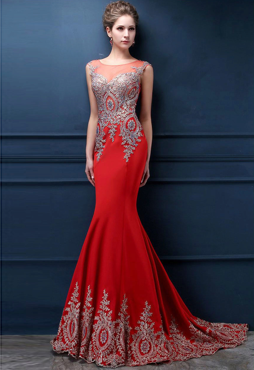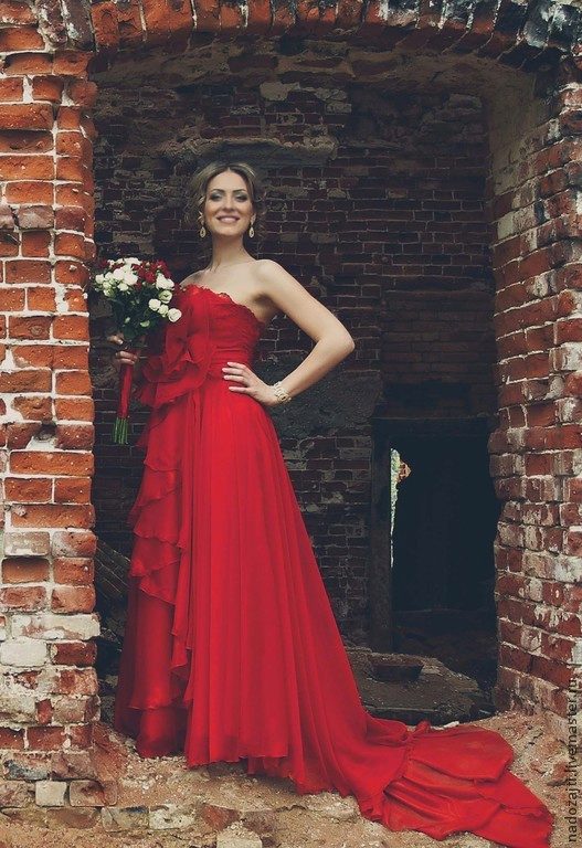 In a red dress, decorated with a train, any girl will feel like a queen. This outfit looks sexy and slightly cocky.
