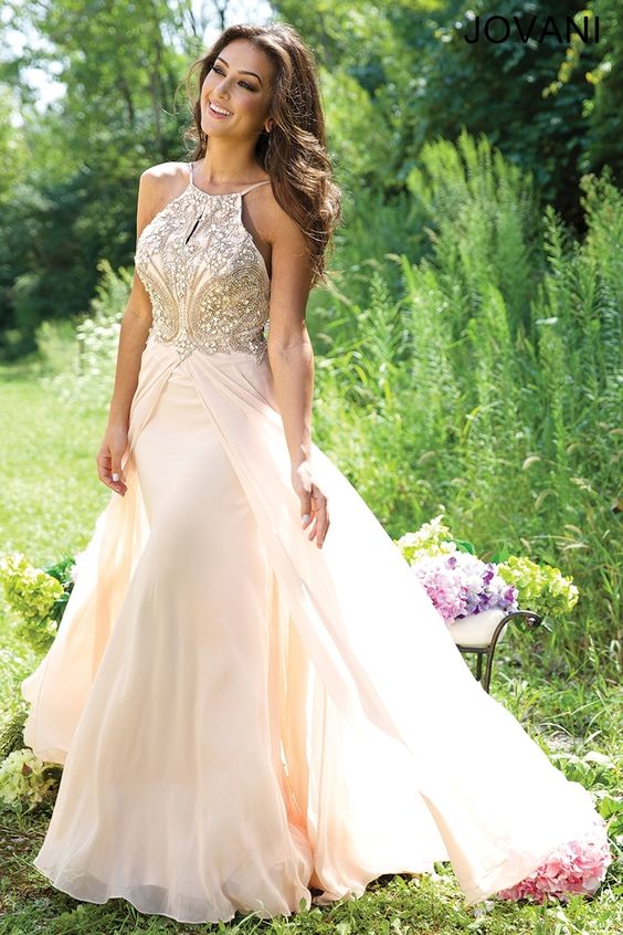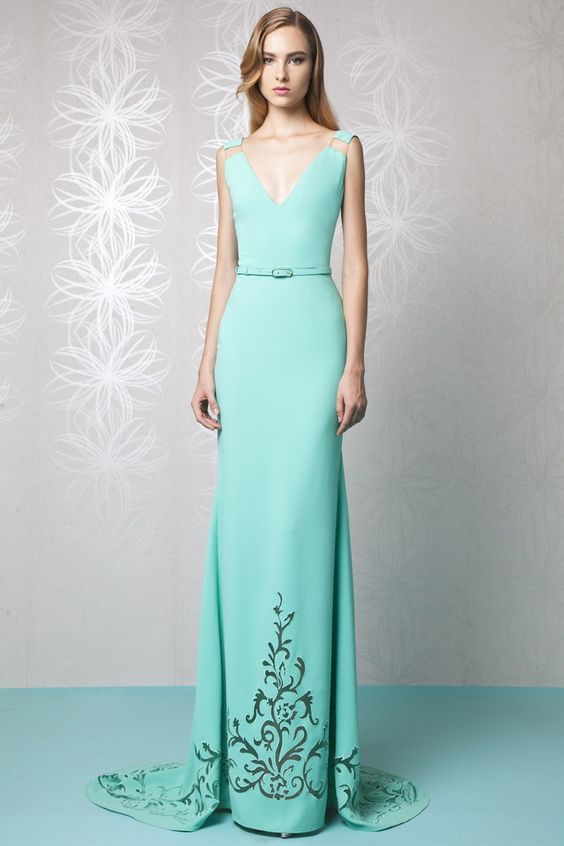 These are the most common models of elegant dresses, complemented by a train. These dresses can be with a corset, open neckline, thin straps, one-shoulder strap or a V-like neckline.