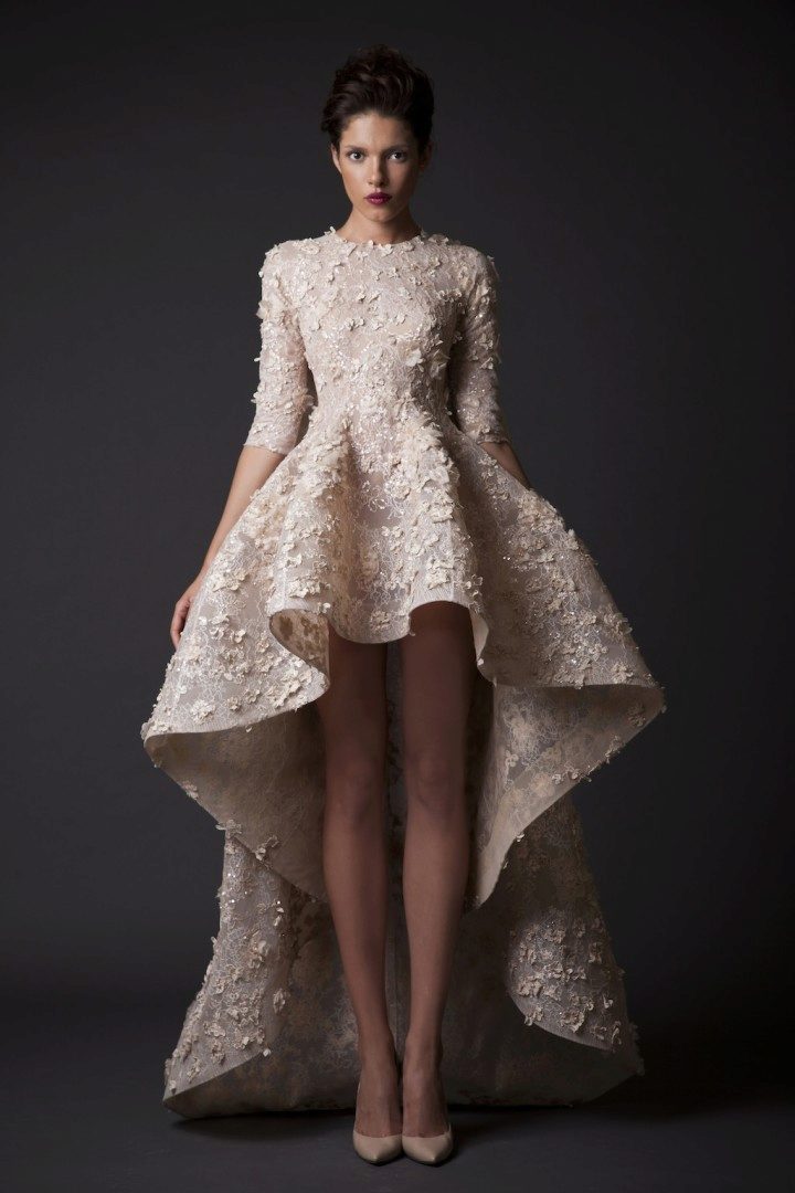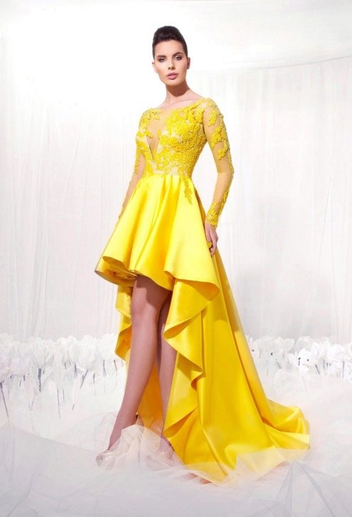 Such models of dresses with a train are quite rare. Often this is summer outfits, in which the train is not too long, and the front part of the skirt is shortened.