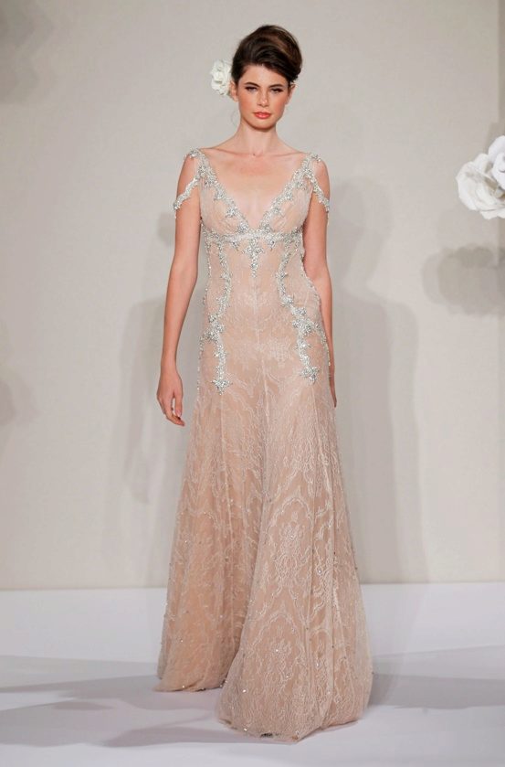Open neckline in a dress with a train is very appropriate, it emphasizes the femininity of the figure, and in the presence of a V-shaped notch makes the figure easier.