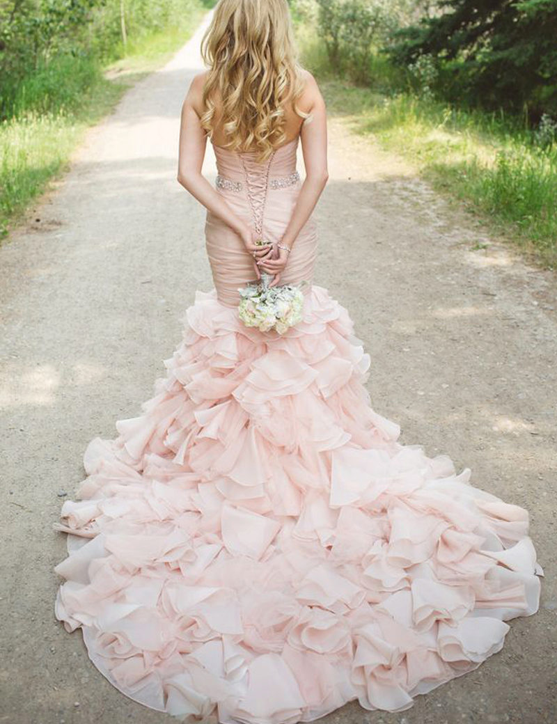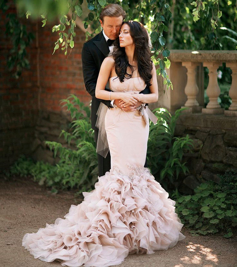 Models with a train of this color look very refined and noble. Lighter blue shades are chosen by young girls, and dark blue dresses look good on women in their 30s.