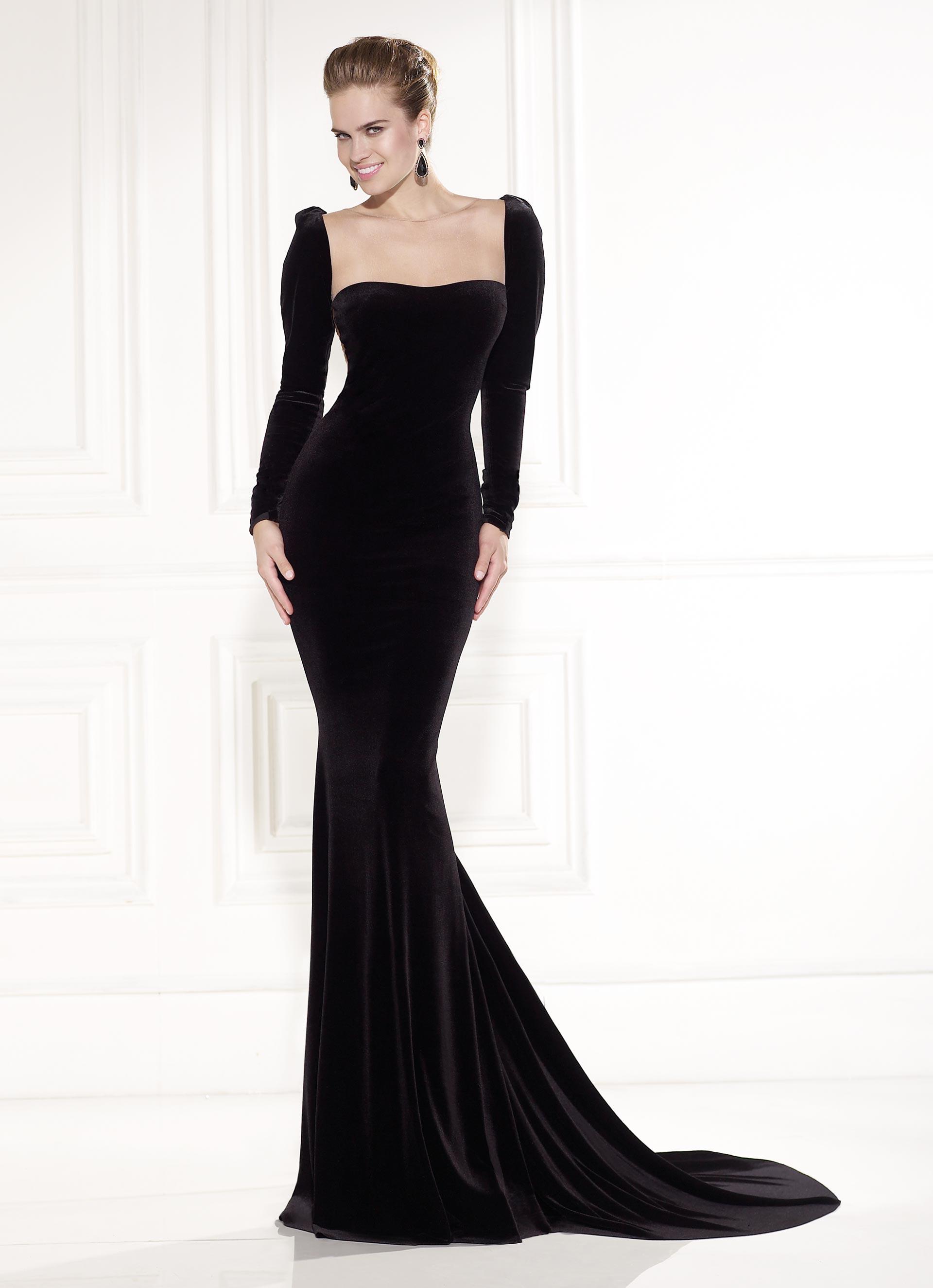 The black dress with a train has a mysterious and majestic look. This dress attracts attention and goes well with gold, red or silver accessories.