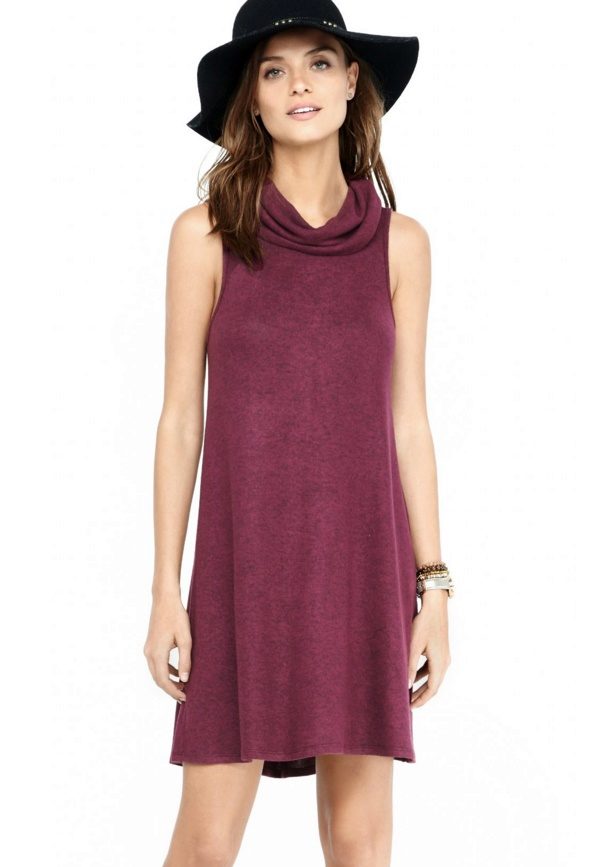 In cool weather, a cozy turtleneck or cardigan can be worn under a sleeveless trapeze dress. We complement the image with a scarf, warm tights and high boots or ankle boots. In the office, such a dress can be combined with a blouse of a tint harmoniously combined with it. As the outerwear fit cardigan, raincoat or coat.