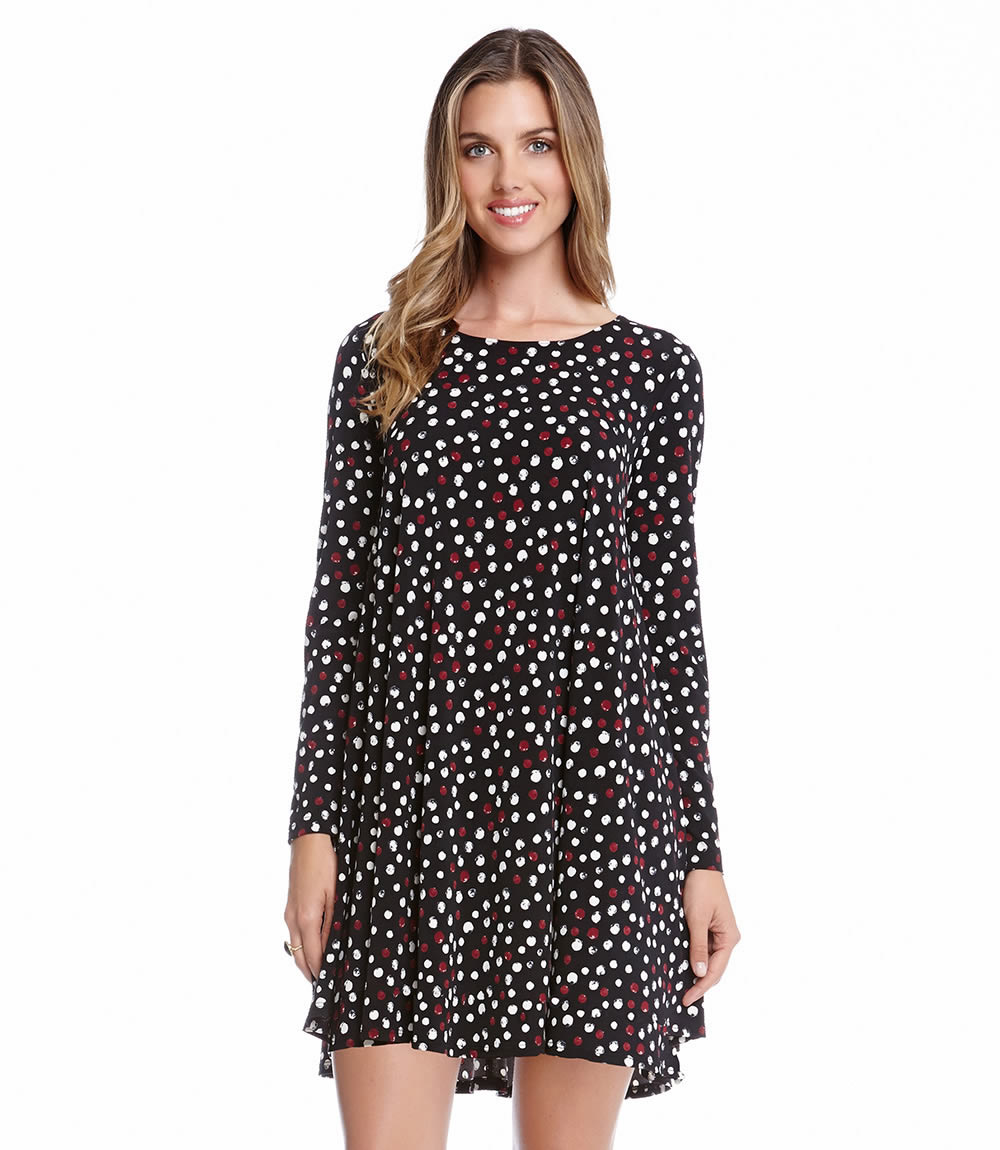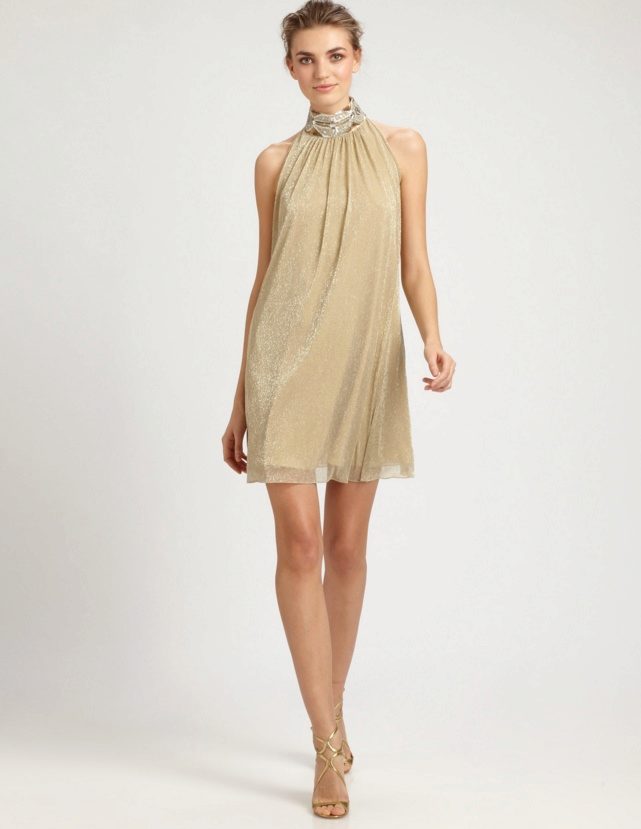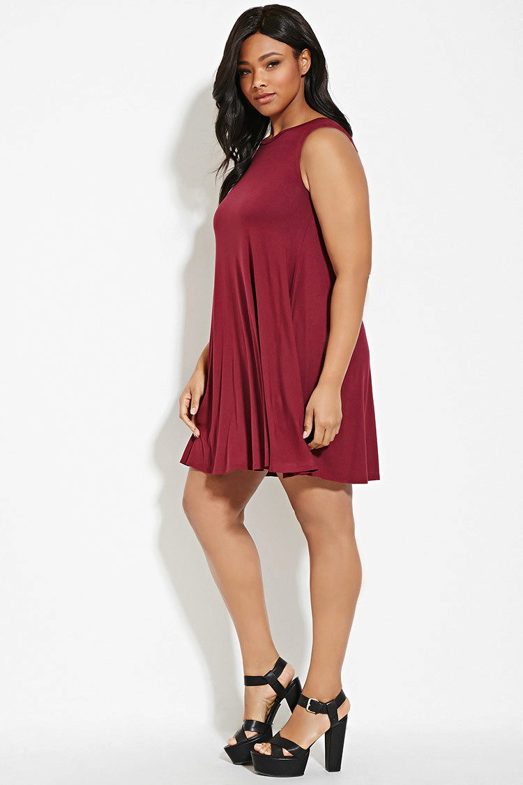 The cut of the trapezoid dress will skillfully hide imperfections, and focuses attention on the charming parts of the figure.