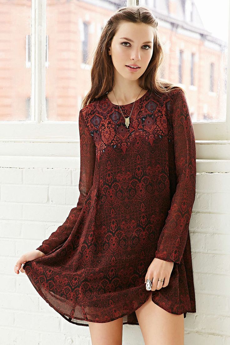 Each year, new trends offer more modern models that enchant with their retro charm. New methods of decoration and fabrics, geometric prints, “animal” and “ethno” motifs, applied overlays on plain material, as well as flounces, ruffles and cuts are used. In the new season relevant models with sleeves of various forms.