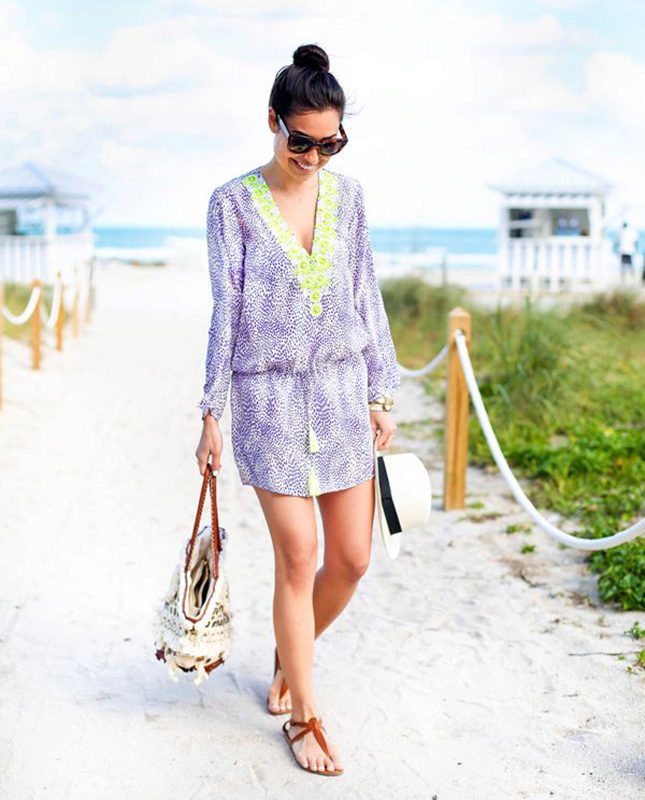 Tunic can be called one of the best options for beachwear. Such a dress of translucent fabric is worn with sandals or sandals with a flat sole. Most often, beach options for tunic dresses are represented by short models that can be worn with shorts or pants.