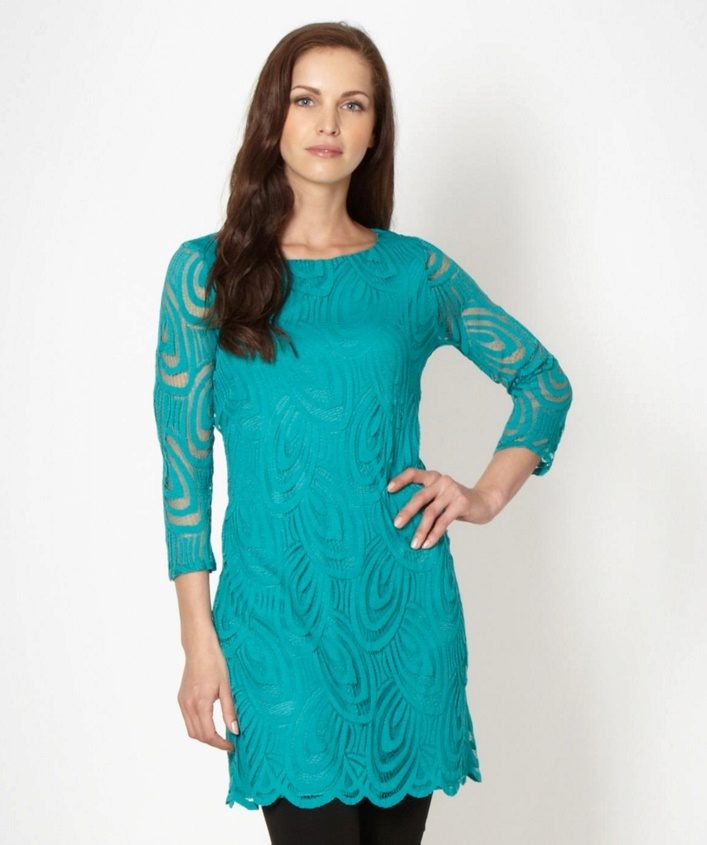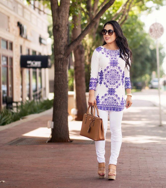 You can also wear bright tunic dresses decorated with embroidery, artificial pearls, rhinestones or lace. Very popular and products with a print - both abstract and floral.