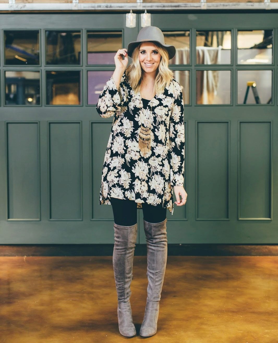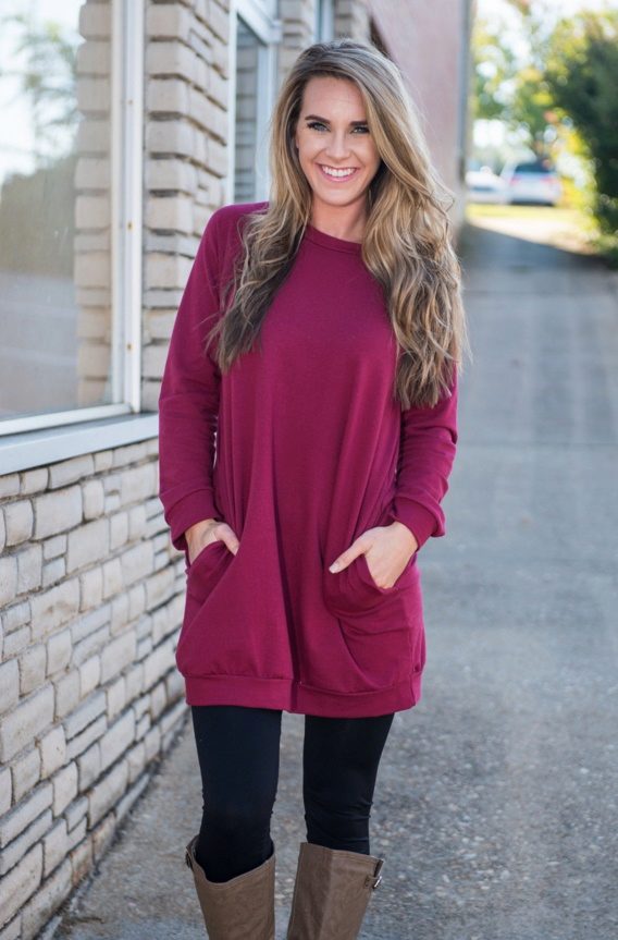 Winter tunic dresses are worn with leather or suede boots, which should have either high heels or a wedge. If you choose shoes with a flat sole under such a dress, this can visually reduce the growth of the girl.