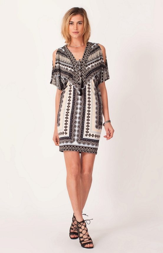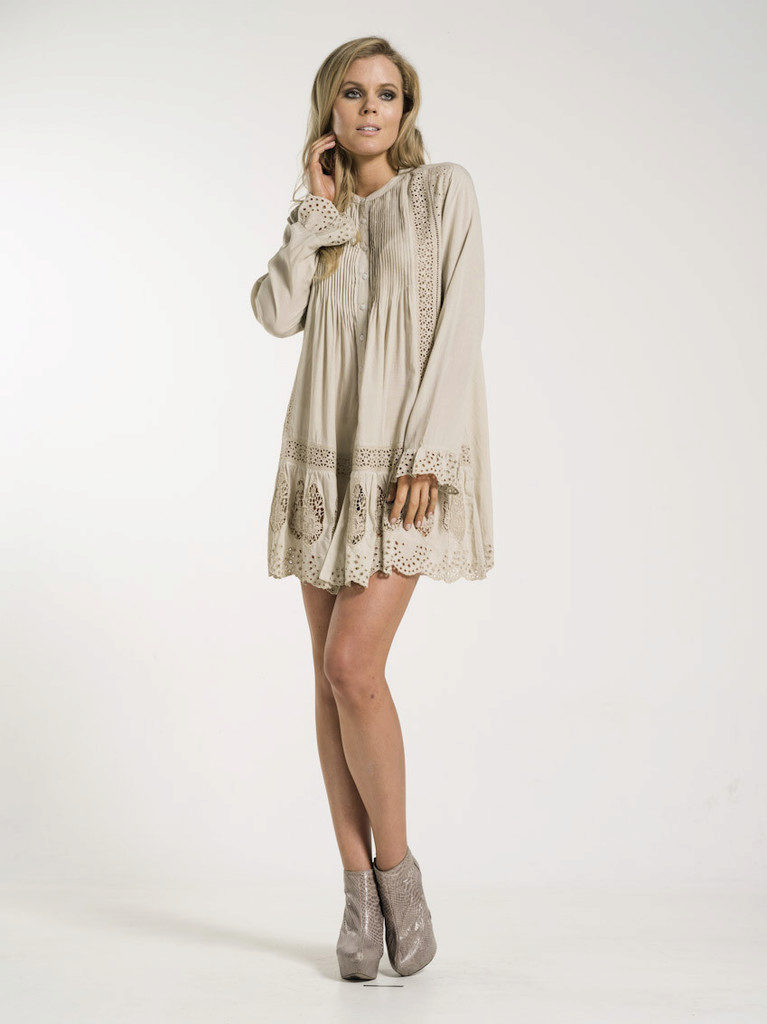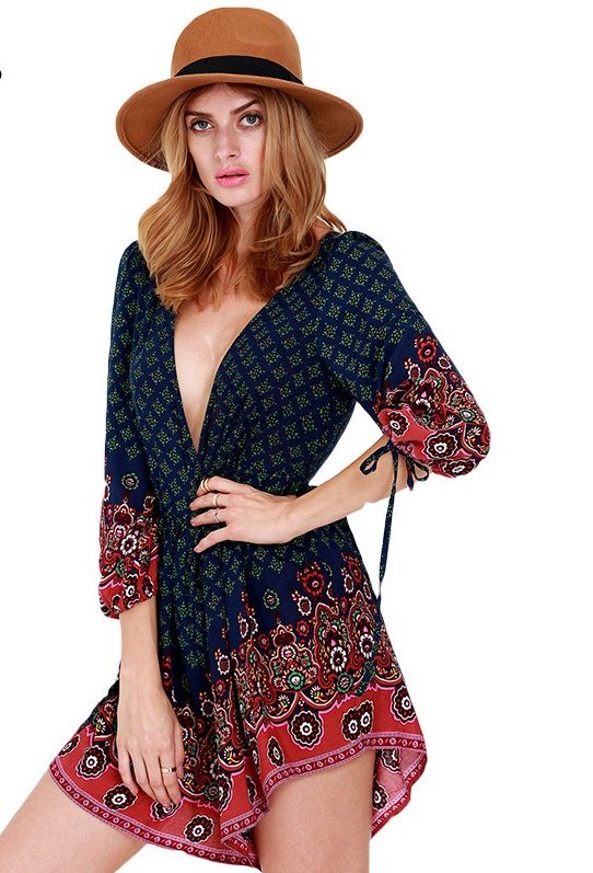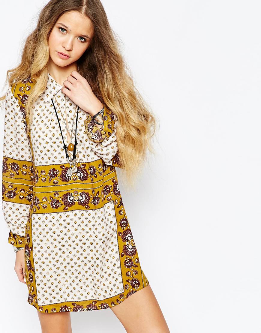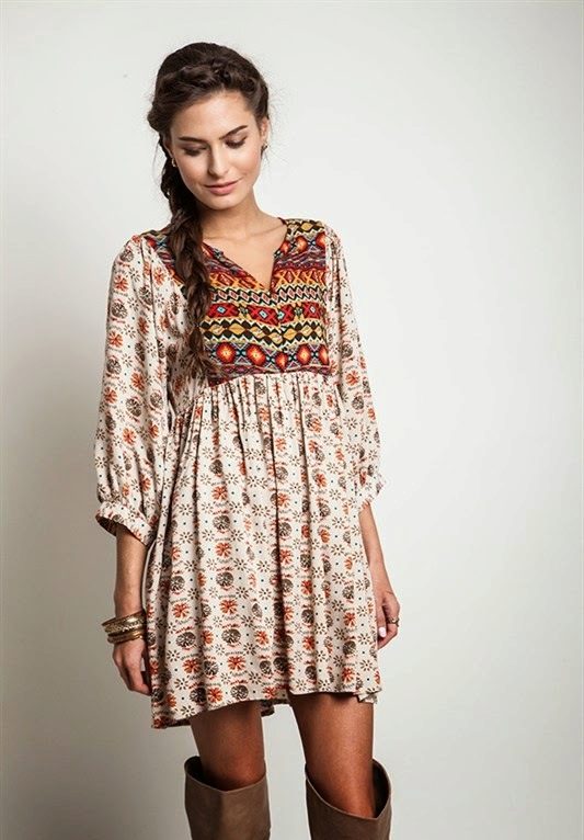 - Gypsy style. Such tunic dresses have puffy sleeves (they are often gathered with an elastic band) and a wide neckline.