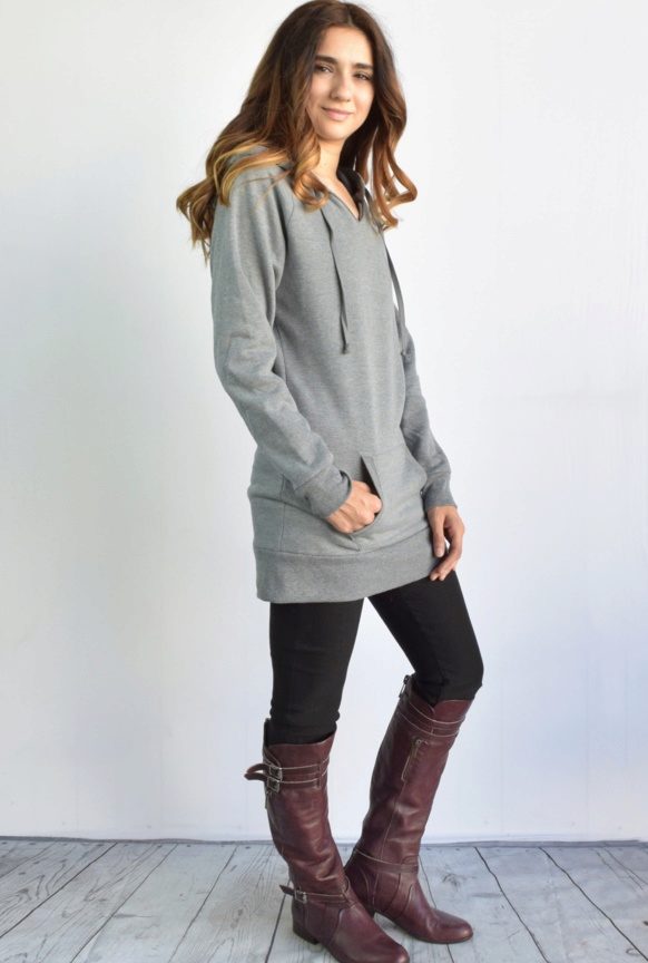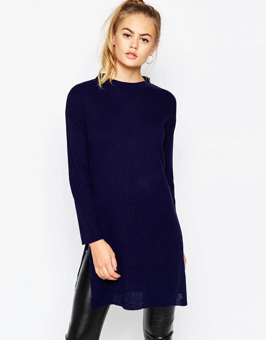 In cool weather, girls prefer tunics made of warm fabrics, for example, knitted patterns resembling an elongated sweatshirt.