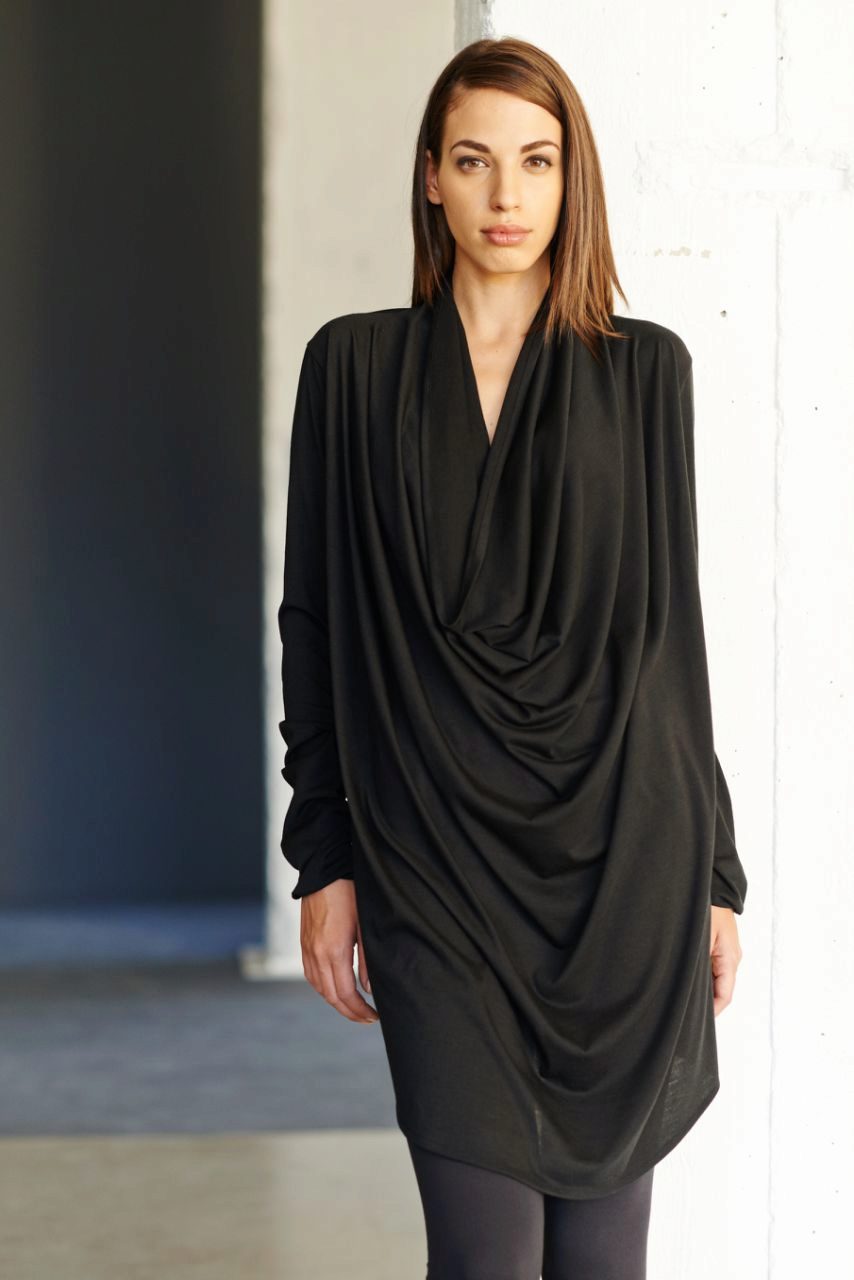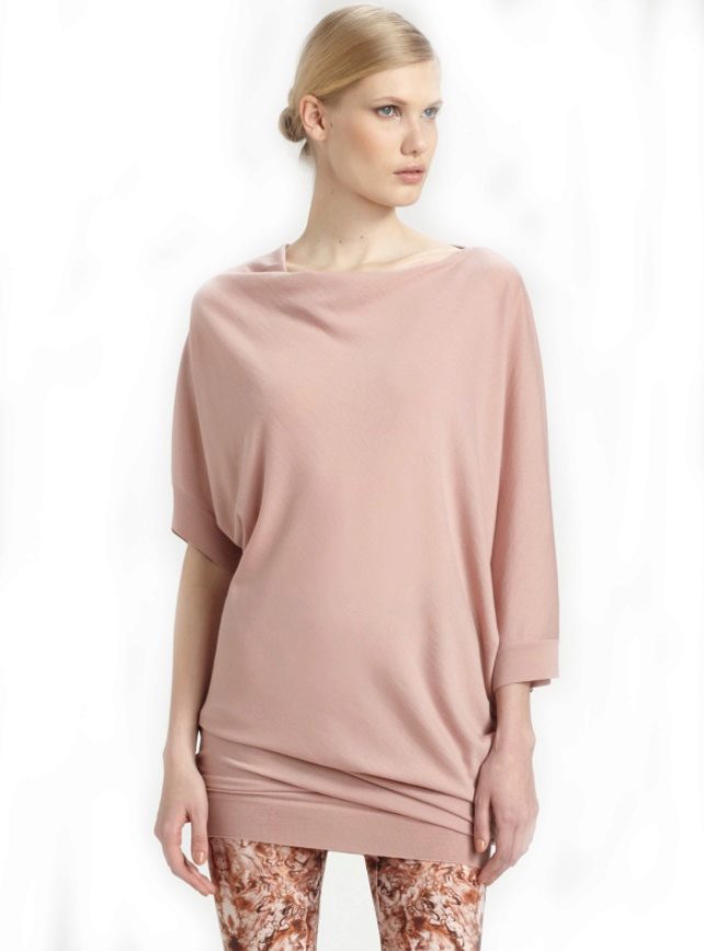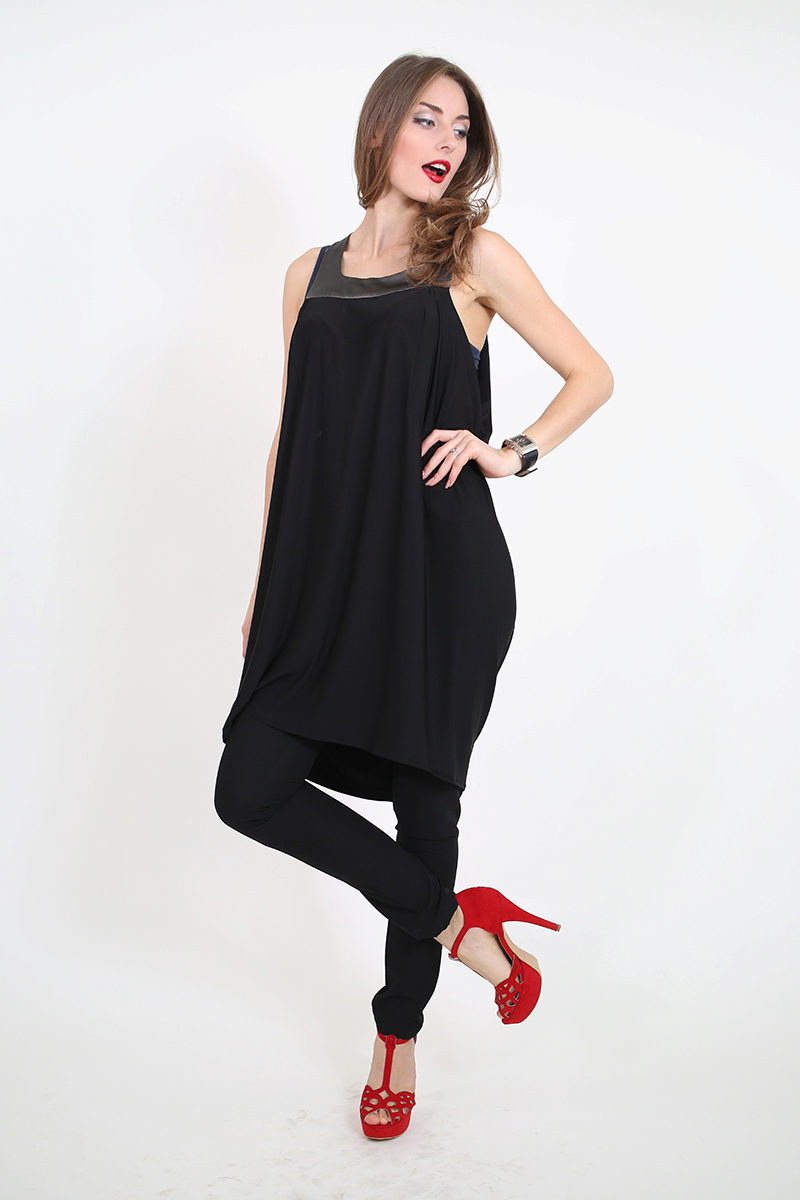 Also, pastel colors tend to choose this style as clothing in the office. Business women like tunics in creamy, beige, sandy or gray color. Black outfit of this style can successfully replace the evening sheath dress.