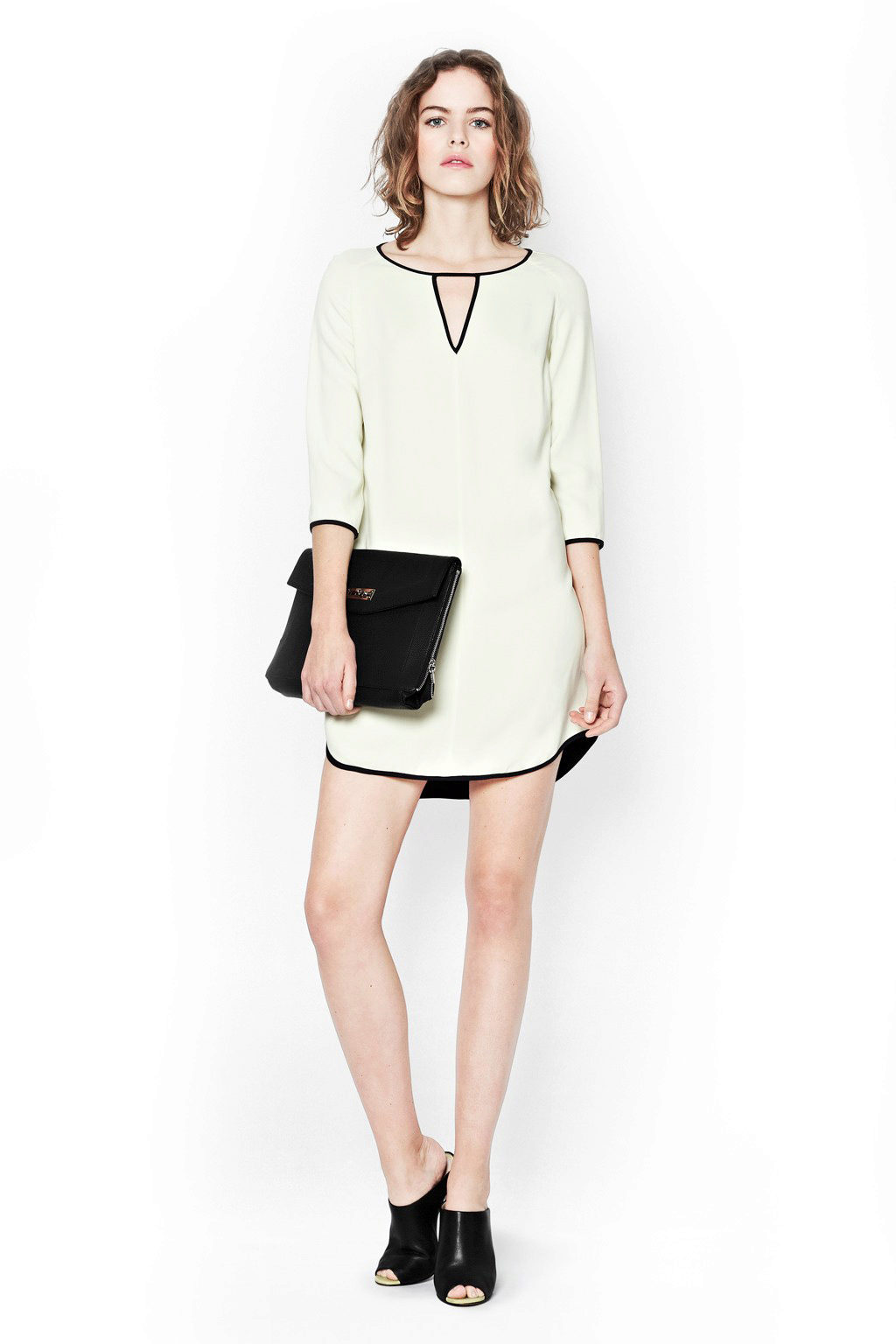 - Cutout. Most often the neckline in a tunic dress is round or V-shaped, but there are also models with a square neckline.
