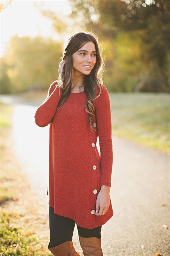 This style looks especially beautiful on tall girls and women of medium height. If the girl is tall, the tunic will be beneficial to emphasize long legs. Beauties with an average growth rate, this dress is able to visually lengthen the line of the legs.