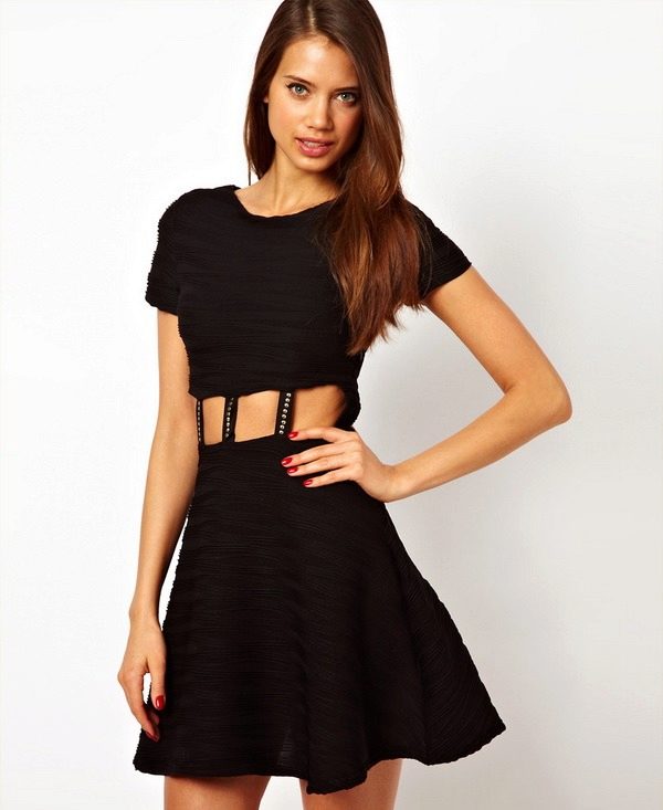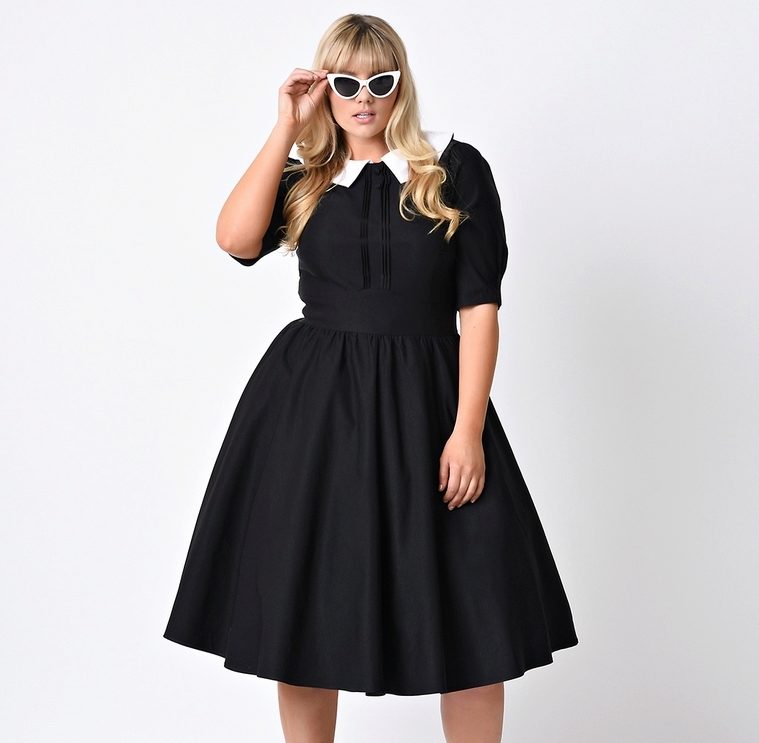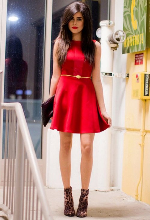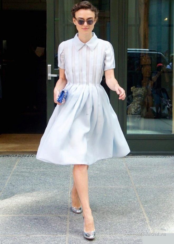 The semi-sun dress with a skirt goes well with various accessories in the style of the 50s and 60s of the last century: small round handbags with a short handle, large sunglasses, bright gloves, rims with bows, etc. Often girls wear such dresses with leather straps around the waist.