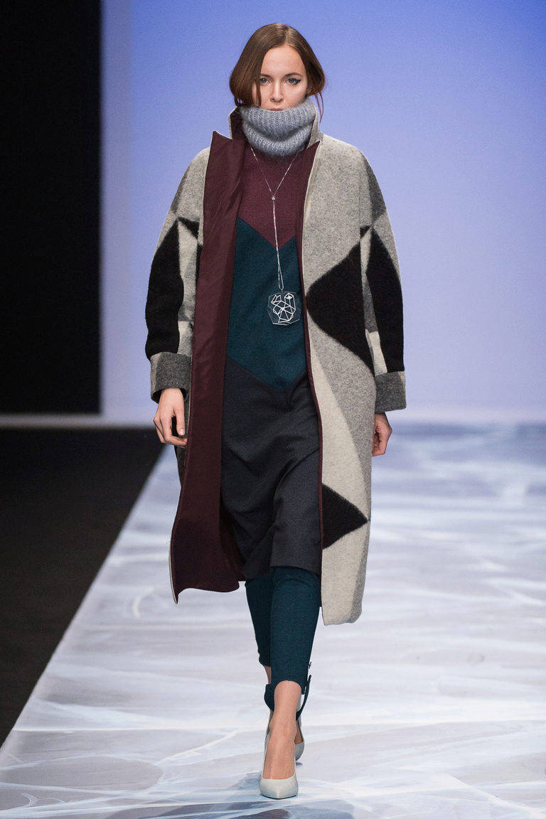 Knit models with a volume collar, for example, a yoke, are capable of giving the necessary slenderness. Contrast solutions are welcome. But large weaving should not be preferred.