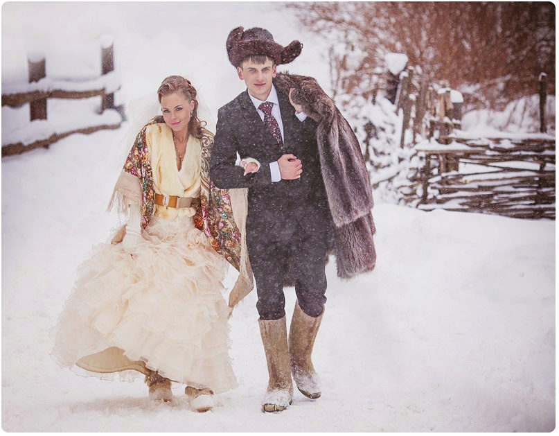 More and more brides began to choose short dresses for a winter wedding, which together with boots with fur trim, a cape and gloves form a fabulous image. But still long dresses remain the most popular.