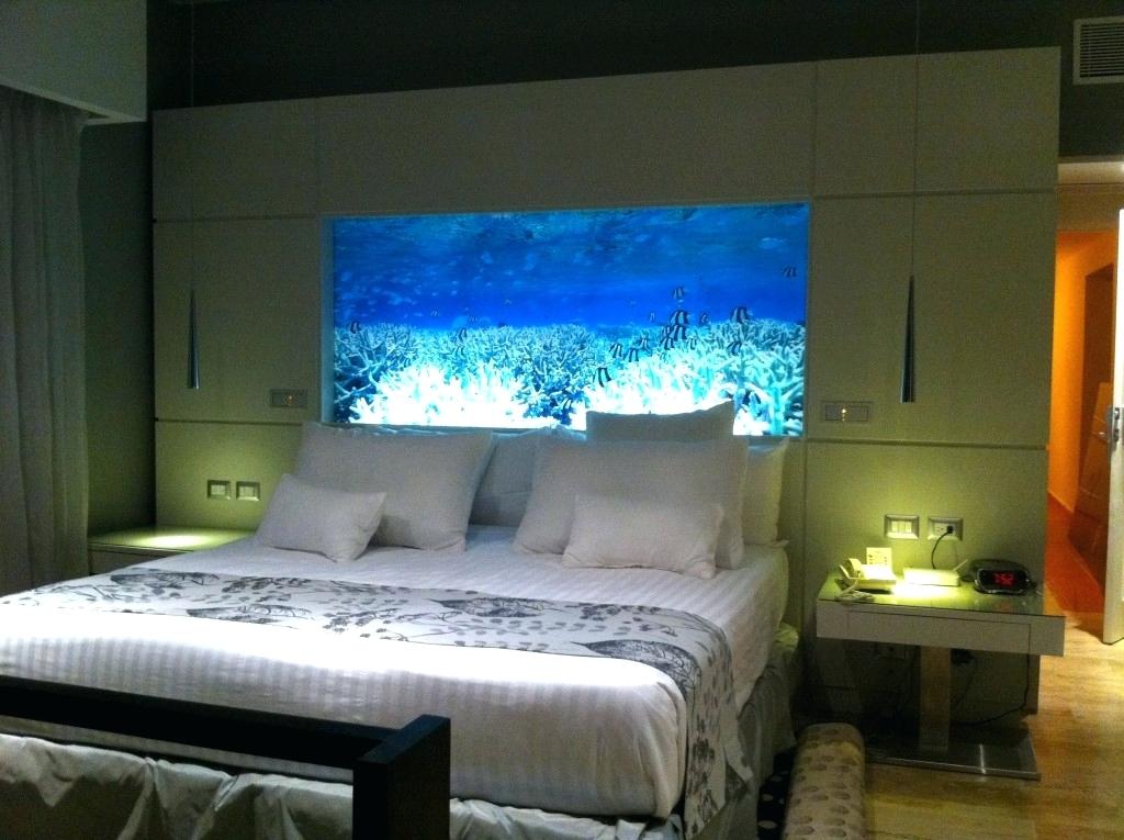 Note that aquarium fish should not live in the bedroom. According to Feng Shui, the bed-room is intended for high-grade rest, in which unnecessary movements are inappropriate. Aquarium built into the head of the bed can have a particularly negative effect.