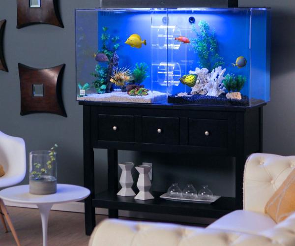 Artificial reservoir in the apartment is a source of positive energy, so its choice must be taken seriously. It should harmoniously fit into the home interior and not look like a separate attribute. Aquariums come in various geometric shapes. The most successful in Feng Shui is considered to be round or rectangular. Symmetric lines are able to send positive energy into space. It is not recommended to make a choice in favor of the square shape.