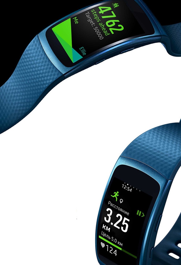 The curved Super Amolet screen has an expensive Samsung Gear Fit 2 bracelet. This device allows you to install third-party applications, so you can independently “collect” the software you need in one device.