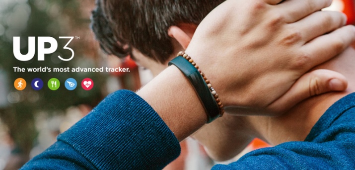Jawbone UP3 fitness bracelet boasts a very stylish and futuristic design. His straps are made of hypoallergenic polyurethane, and the case is made of durable aluminum.