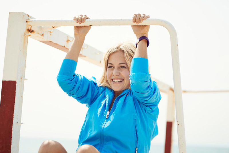 Beautiful model demonstrates another well-known and popular brand - Samsung. The manufacturer offers customers a high-quality calorie-counting device that can monitor a person’s sleep and physical activity.