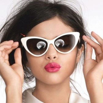 To distinguish the "cat's eye" can be on a slightly elongated shape and upturned corners, tending to the temples. Such a frame is good both in accessories from the sun, and in corrective models for every day.