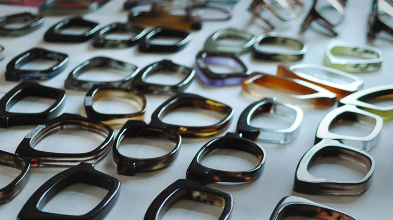 - Cellulose Acetate - one of the most popular materials capable of accurately transfer colors and shades, as well as their smooth transitions into each other. The plastic of this type is light and impact-resistant, however, in places of direct contact with the skin it quickly fades, reacting with sweat.