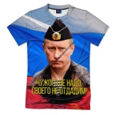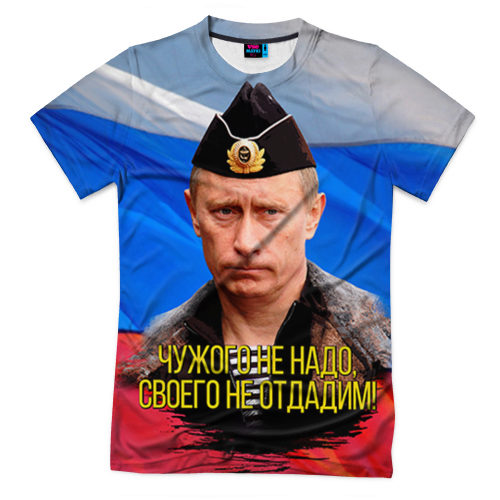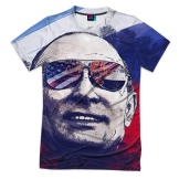 - Patriotic model from Vsemayki.ru: T-shirt with the image of the President of the Russian Federation against the background of the national flag. Price - 1290 rubles.