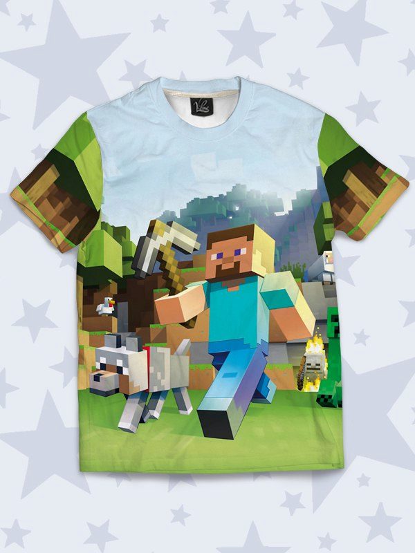 - The boy model from Vsemayki.ru: T-shirt with a three-dimensional pattern based on the popular computer game Minecraft. Price - 1150 rubles.