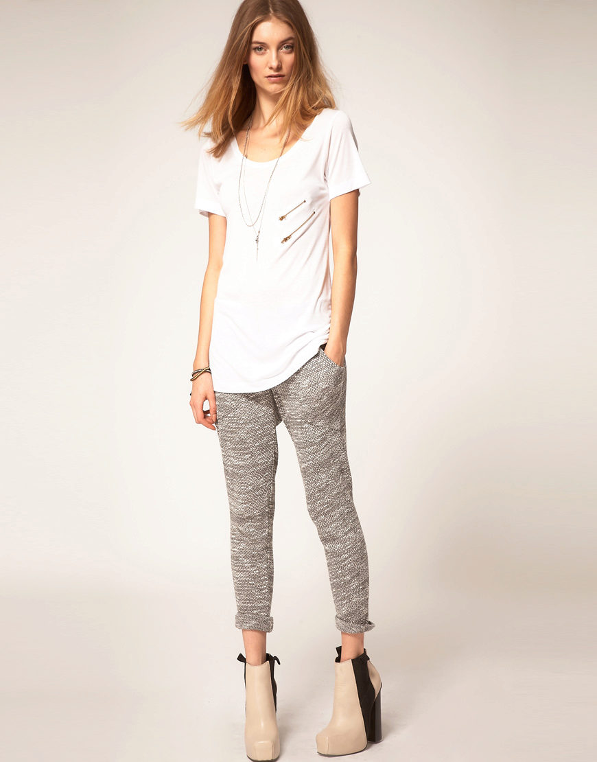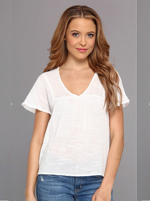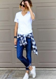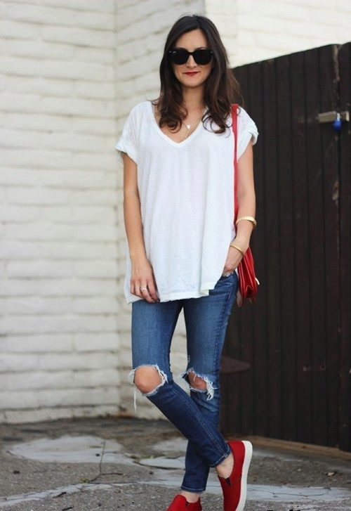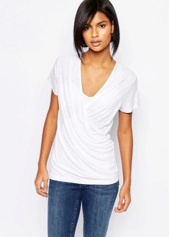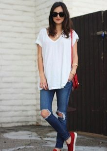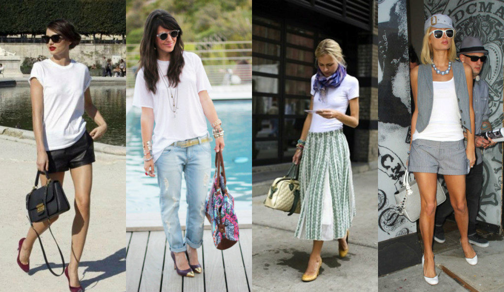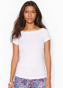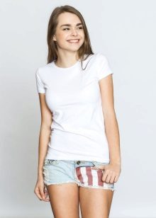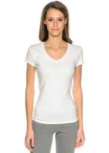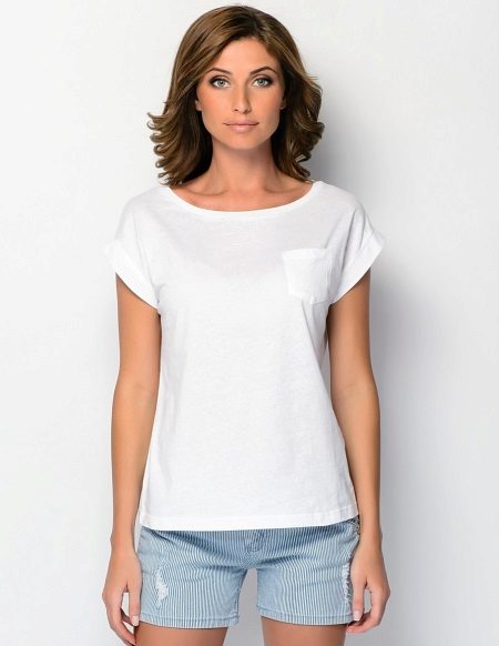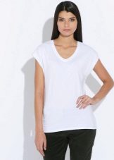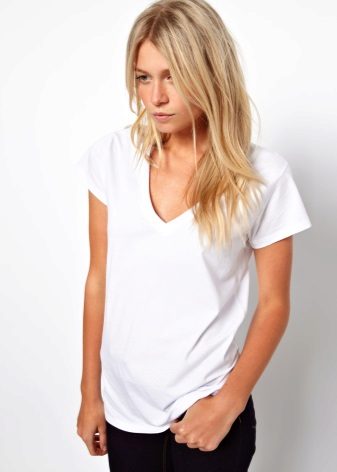 In addition to these two styles, white T-shirts come with an oval neckline or square, less or deeper. Such styles, too, can emphasize the figure no less impressive.