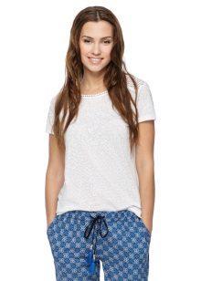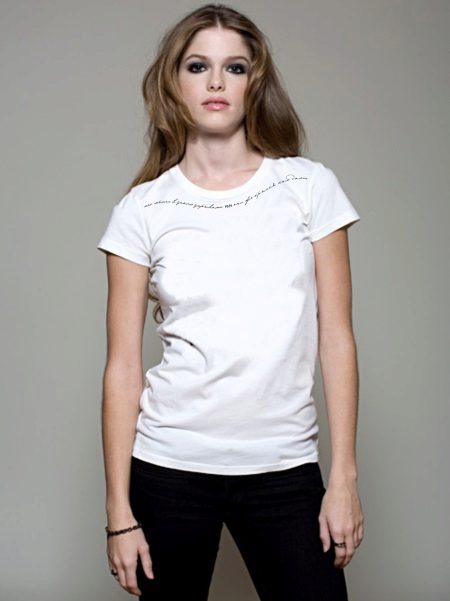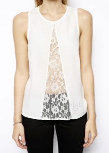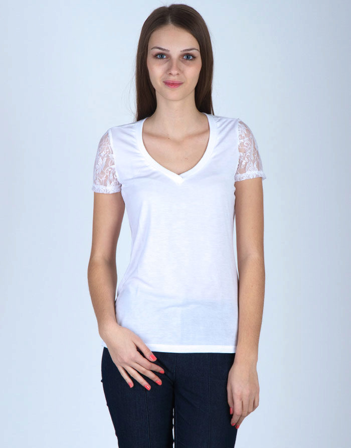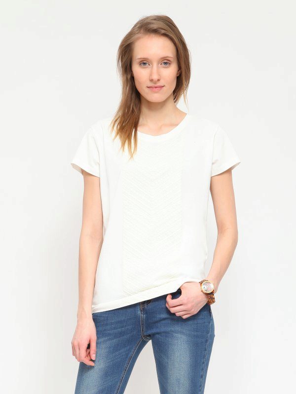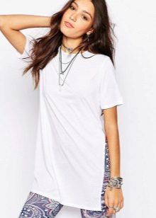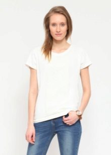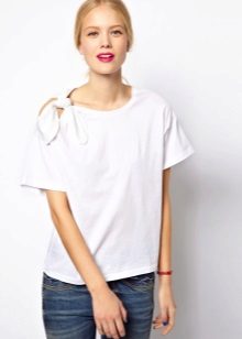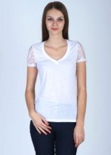 But designers do not stop at simplicity. In recent years, white T-shirts have undergone many changes and received additional finishing details. These are fringe, rhinestones, inserts from another fabric, for example, European lace, or other transparent materials.